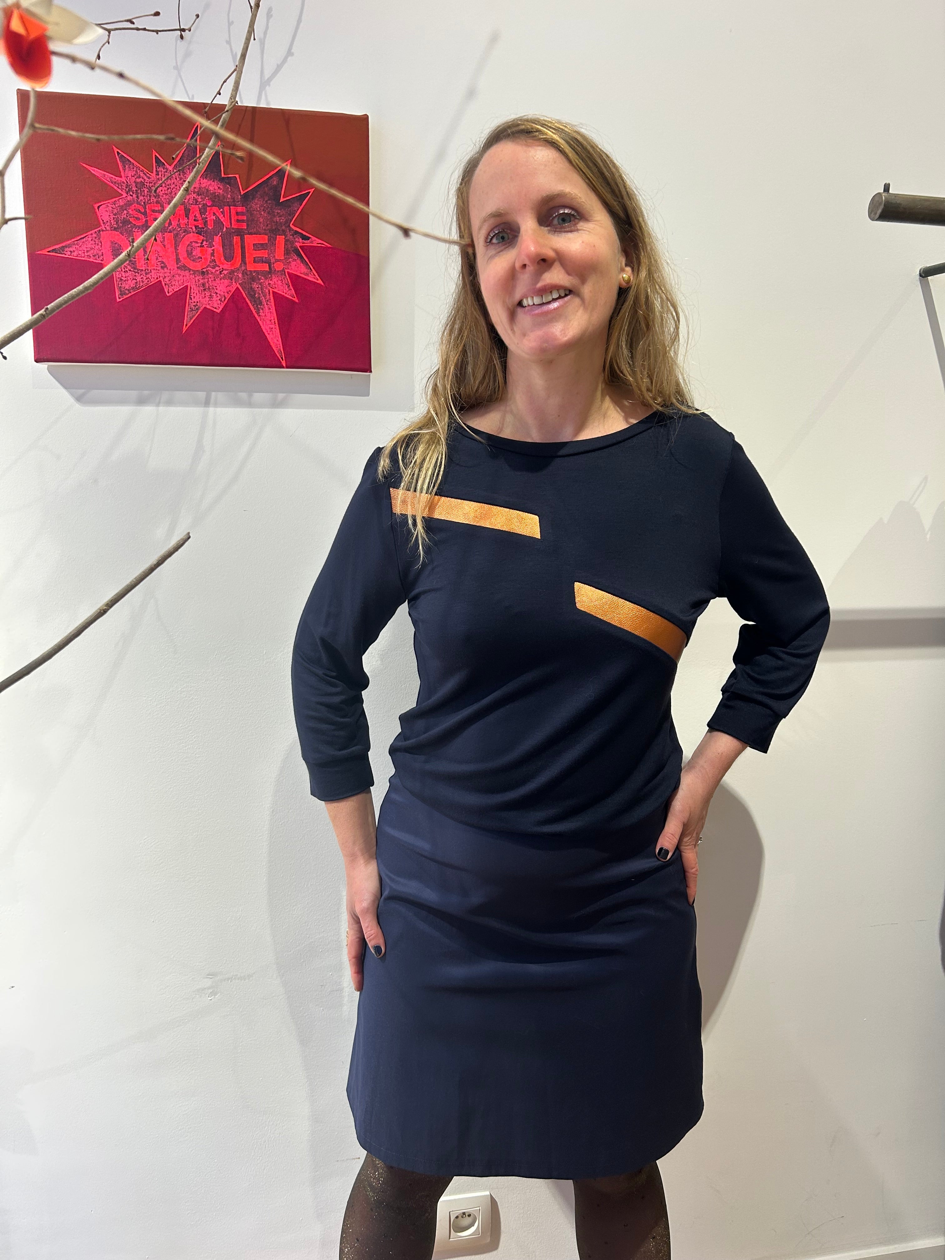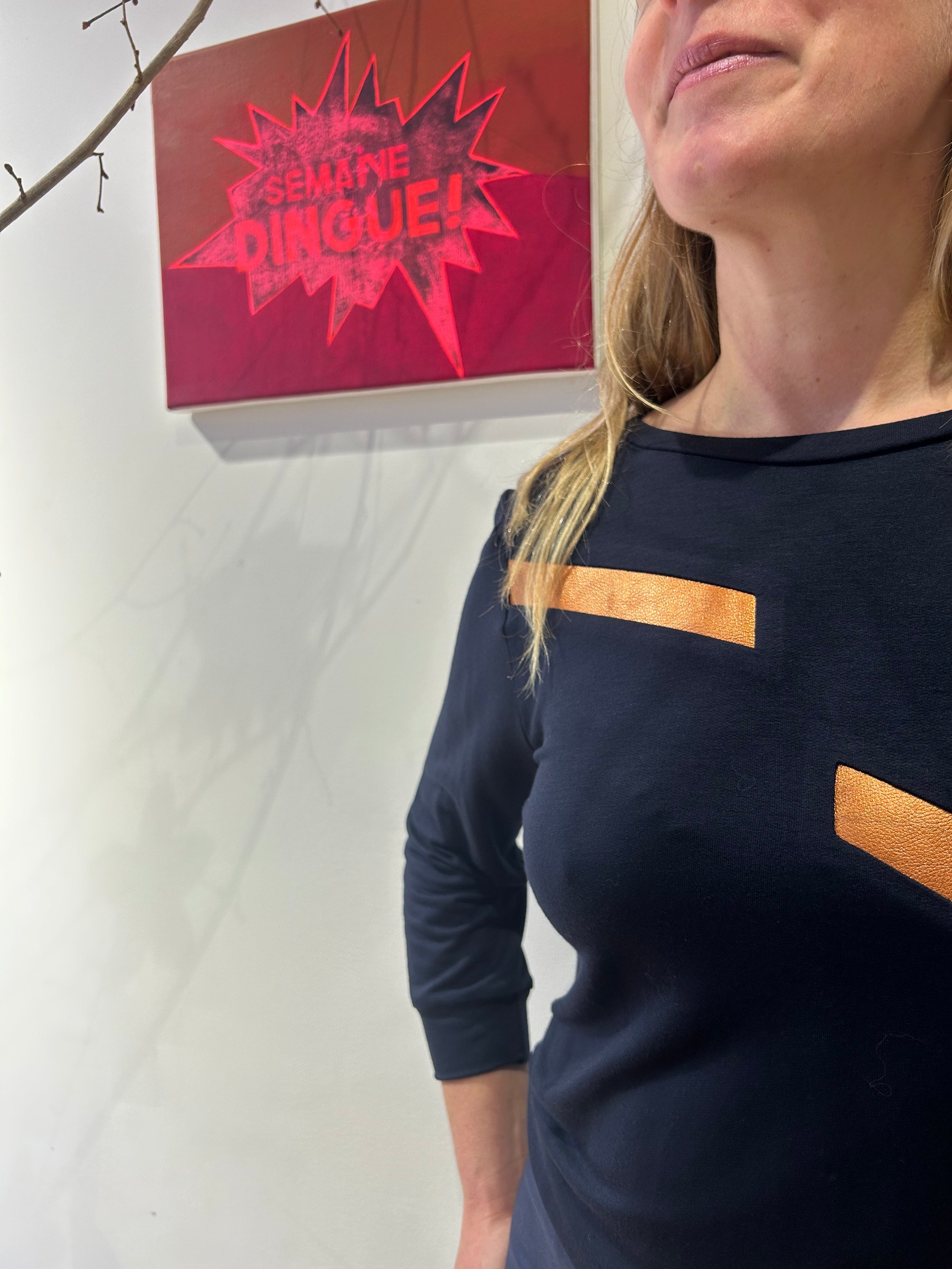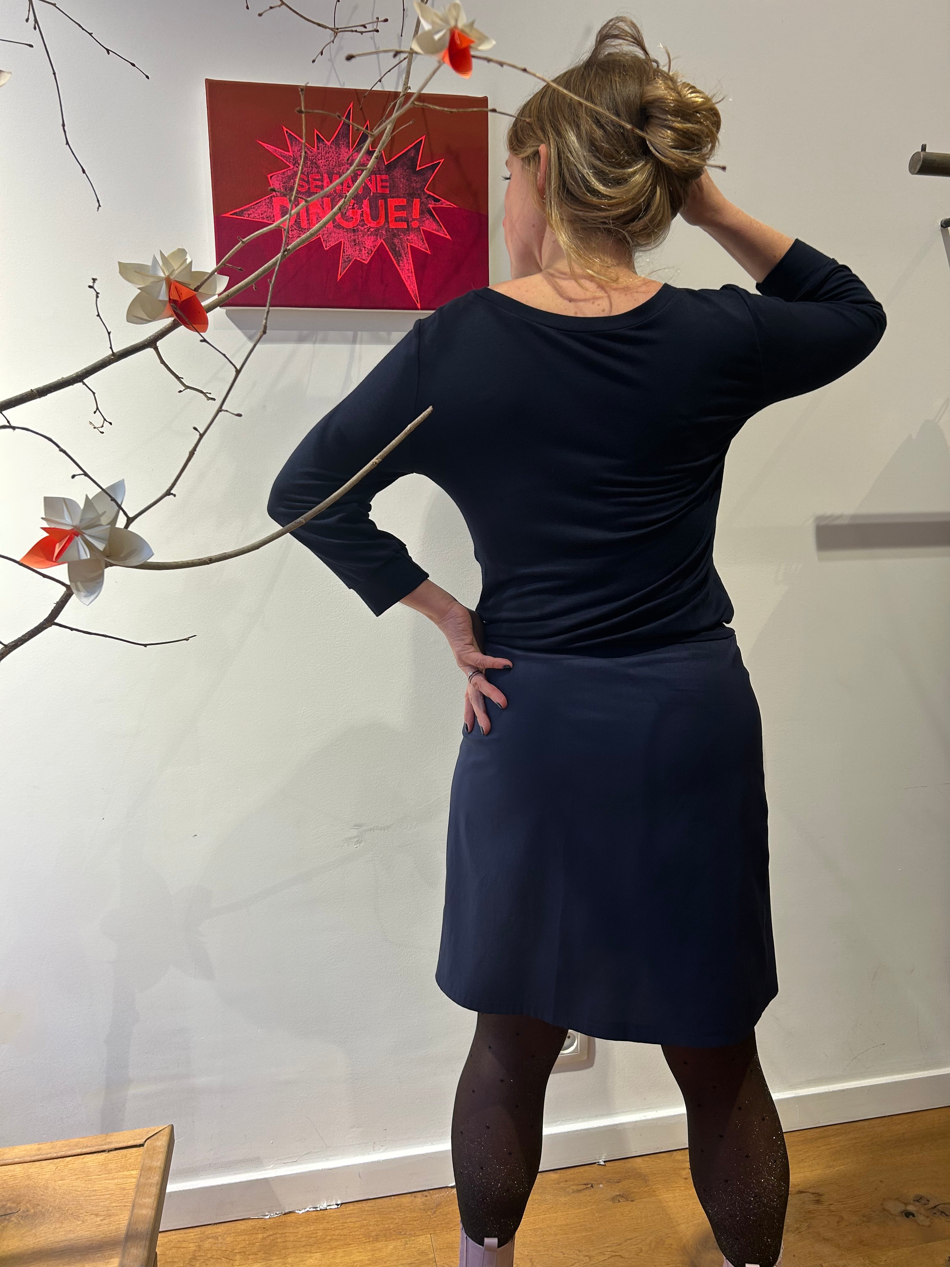 • Crafted with a navy stretch viscose jersey for the top and a fully opaque yet ultra-comfortable stretch cotton for the skirt, it moves with you, flatters you, and lets you breathe. But the real magic?