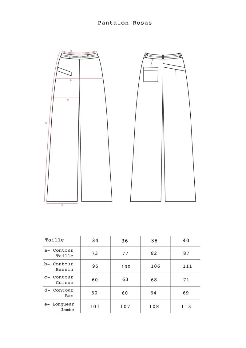 • Pantalon moulant à la taille et aux hanches, généreux au niveau des fesses,  large jusqu'en bas pour souligner le corps et donner un look élégant ou décontracté