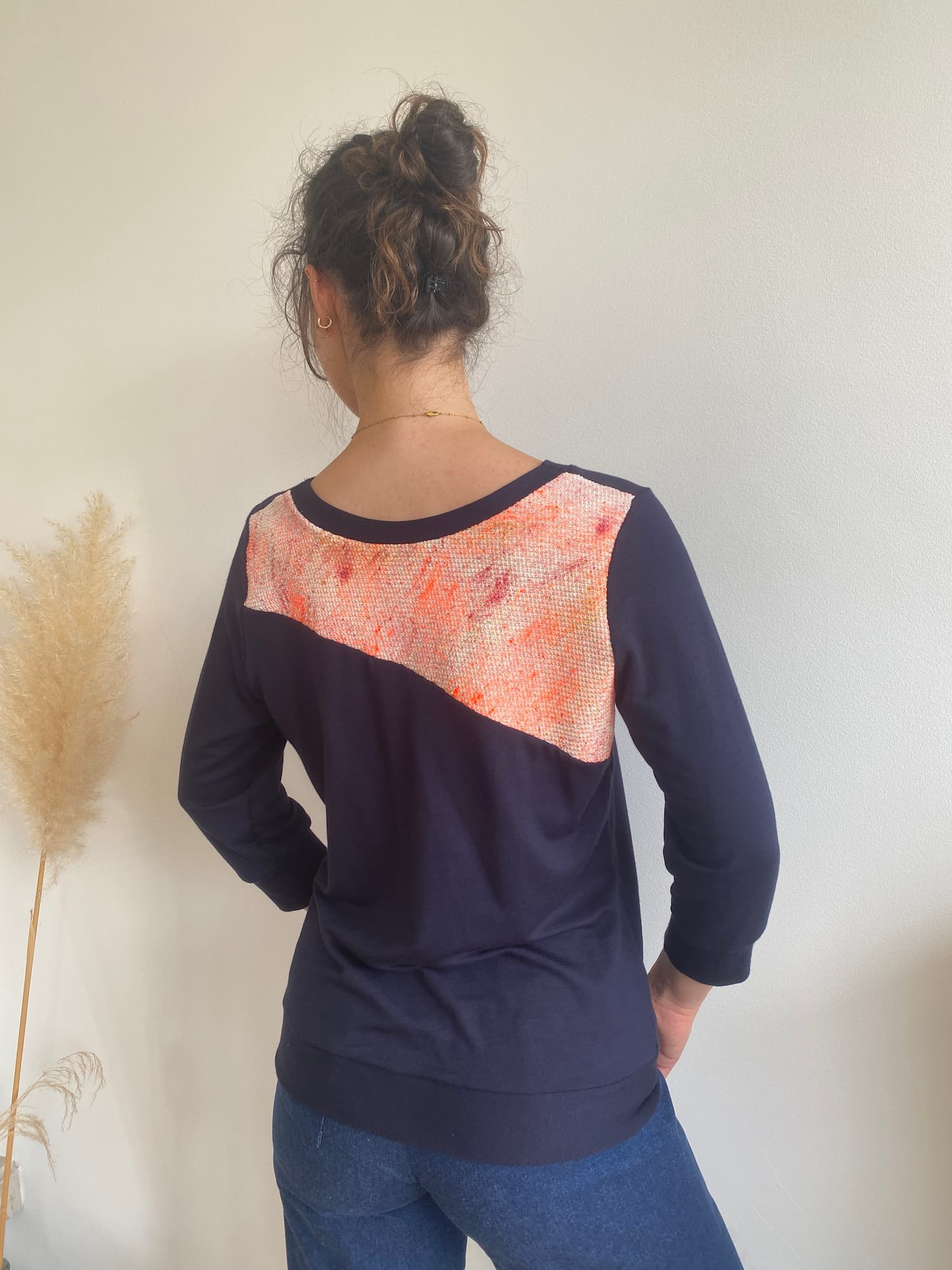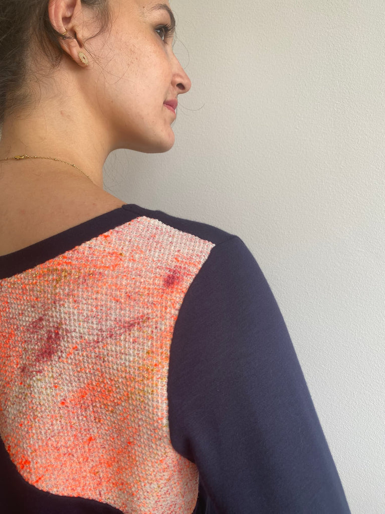 • Mixed with a 100% off white cotton hand-painted by me in neon orange, blood red, and gold
