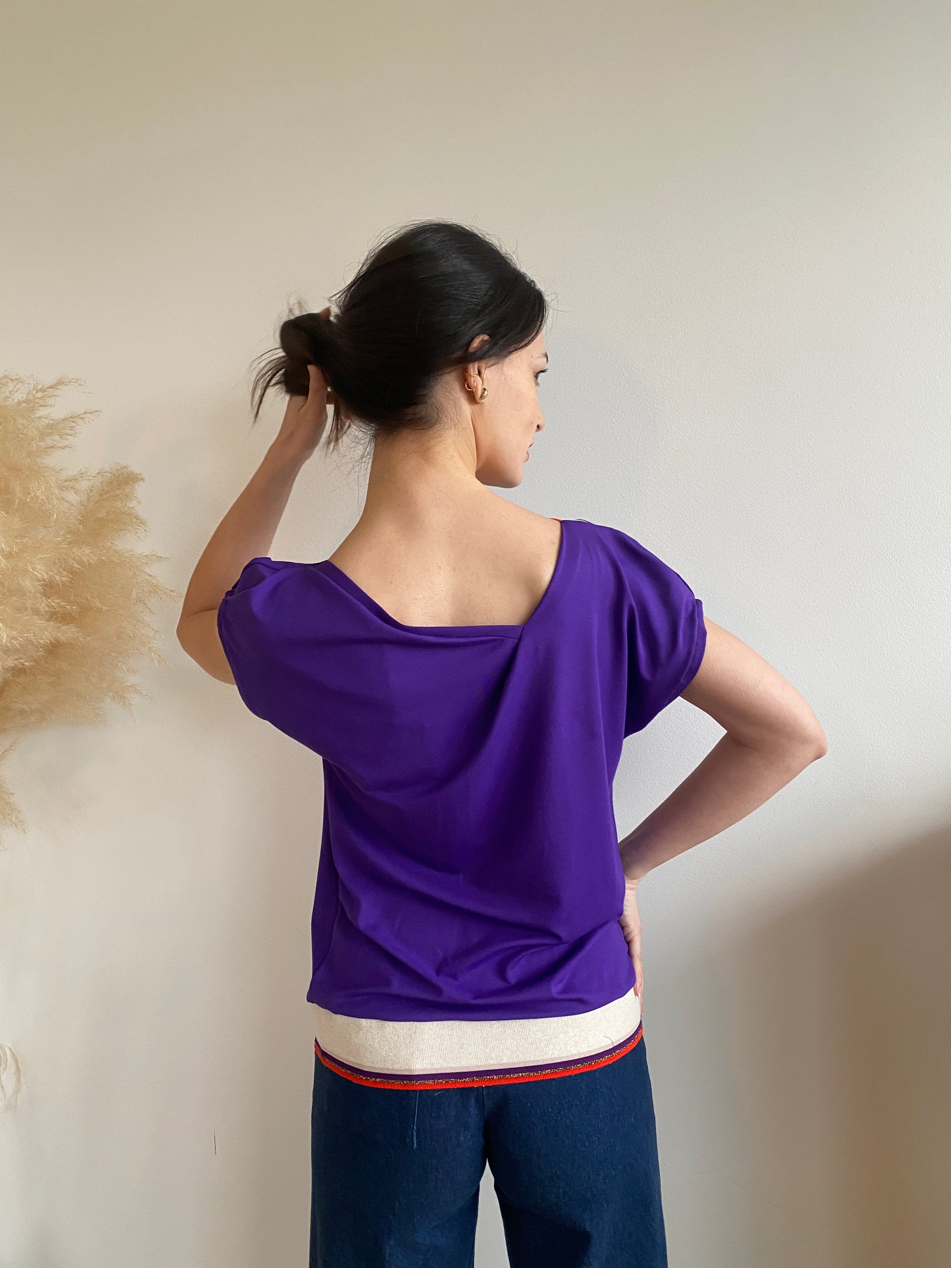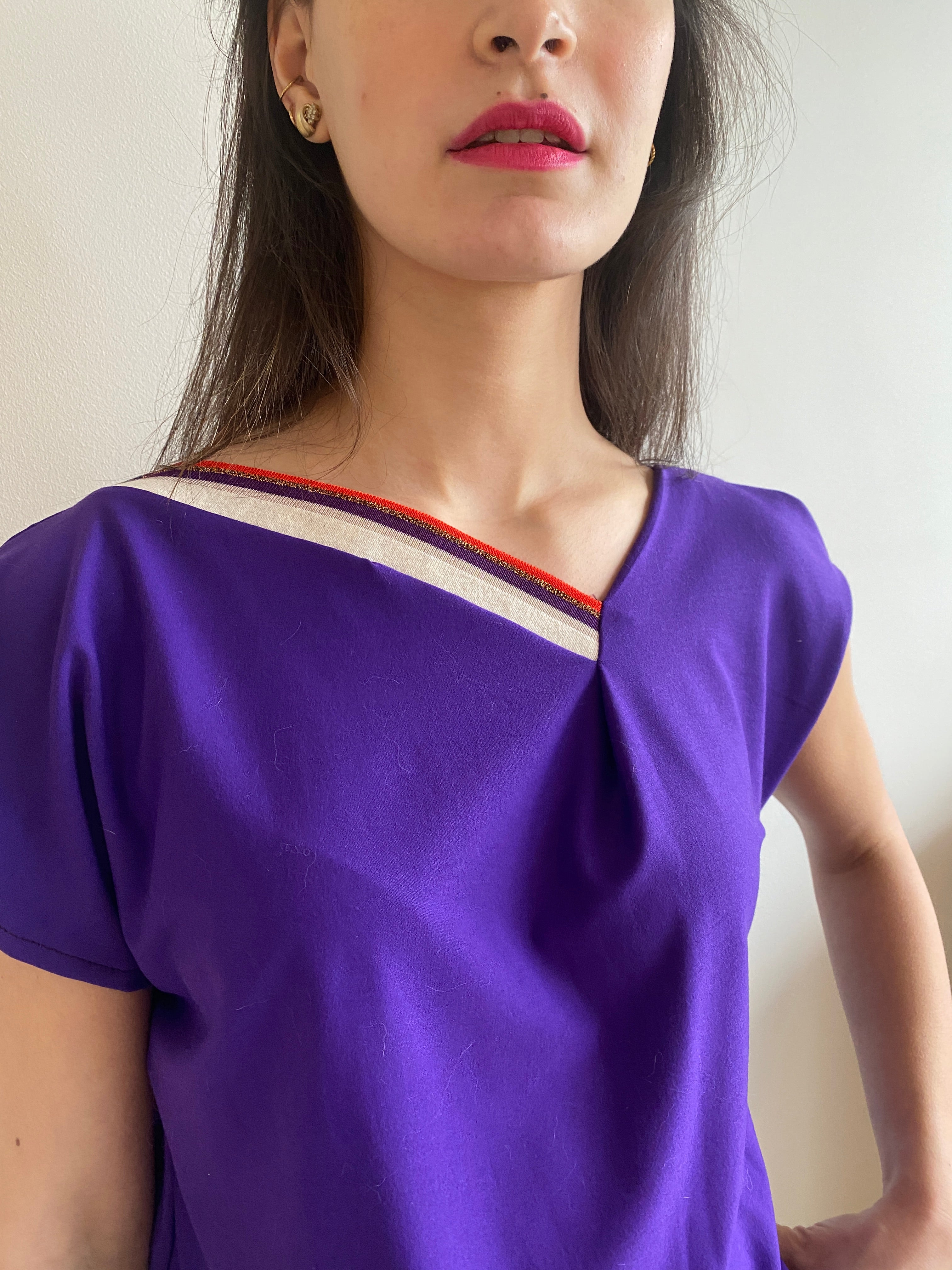 • Twisted asymmetric neckline