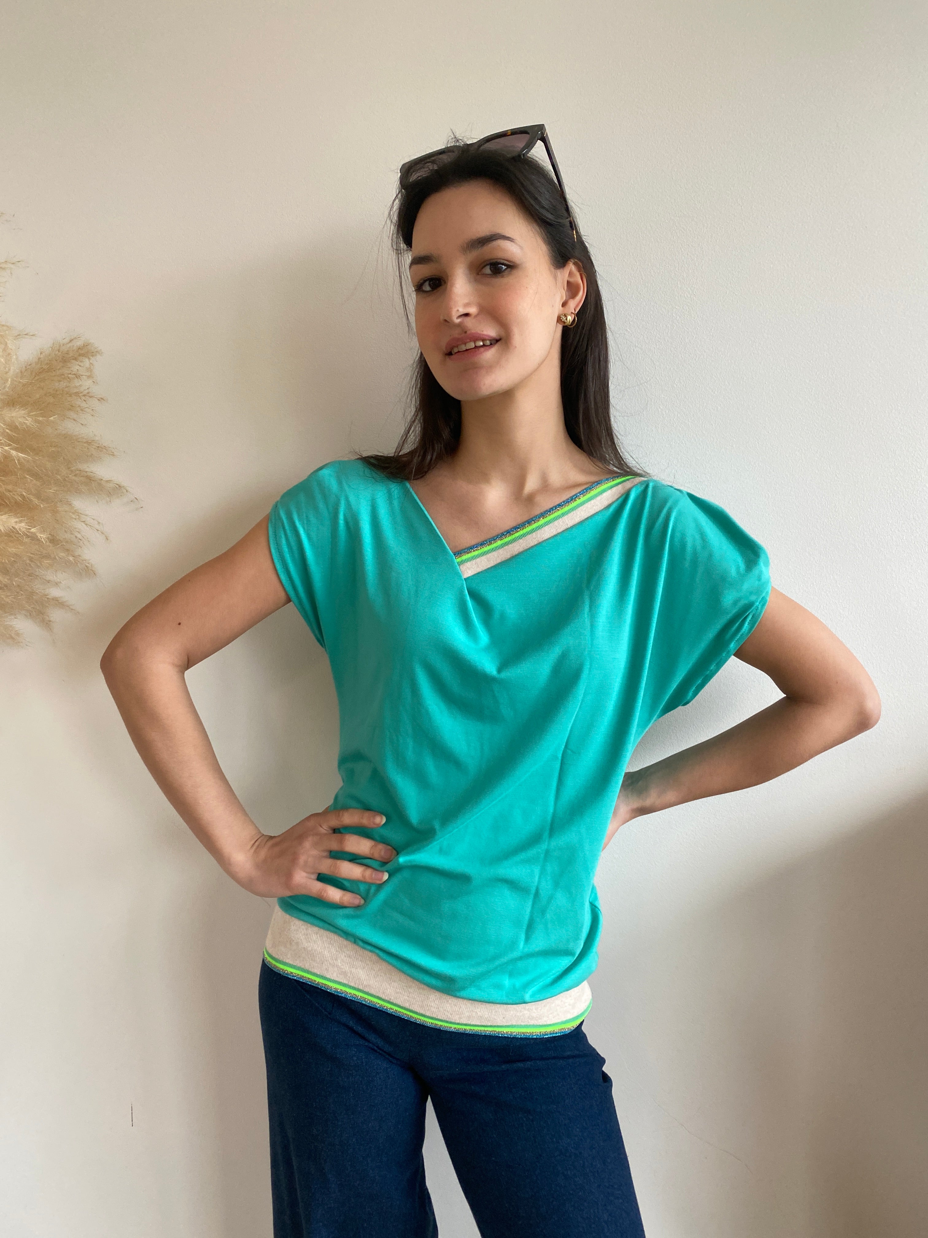 • Water green jersey top