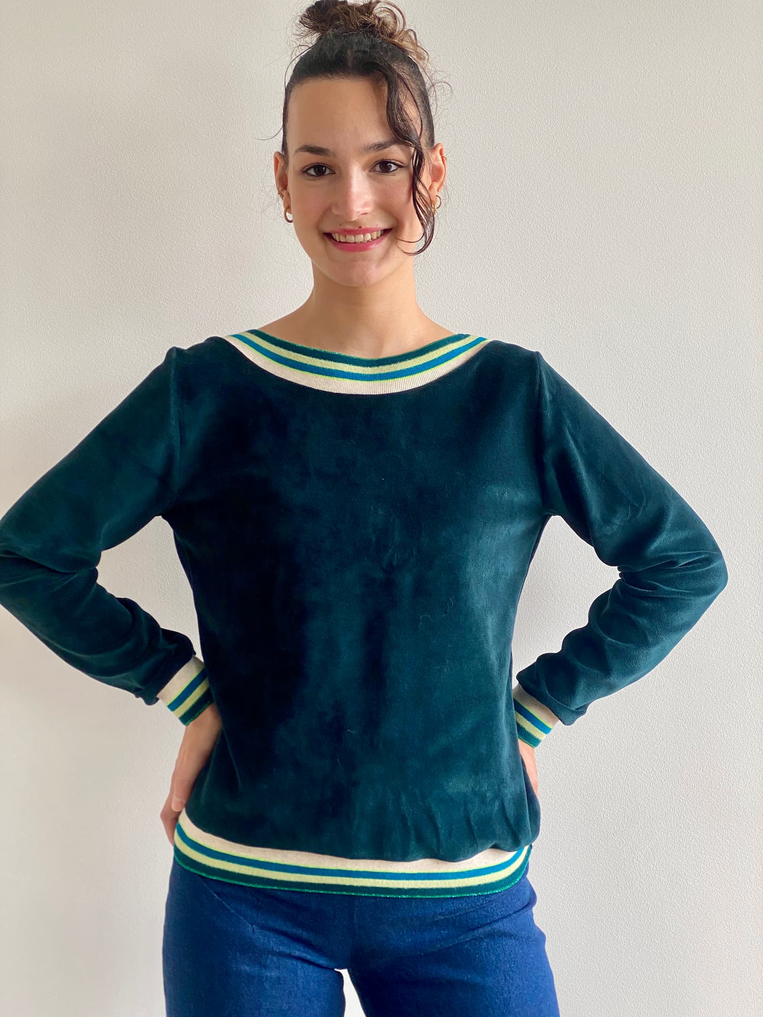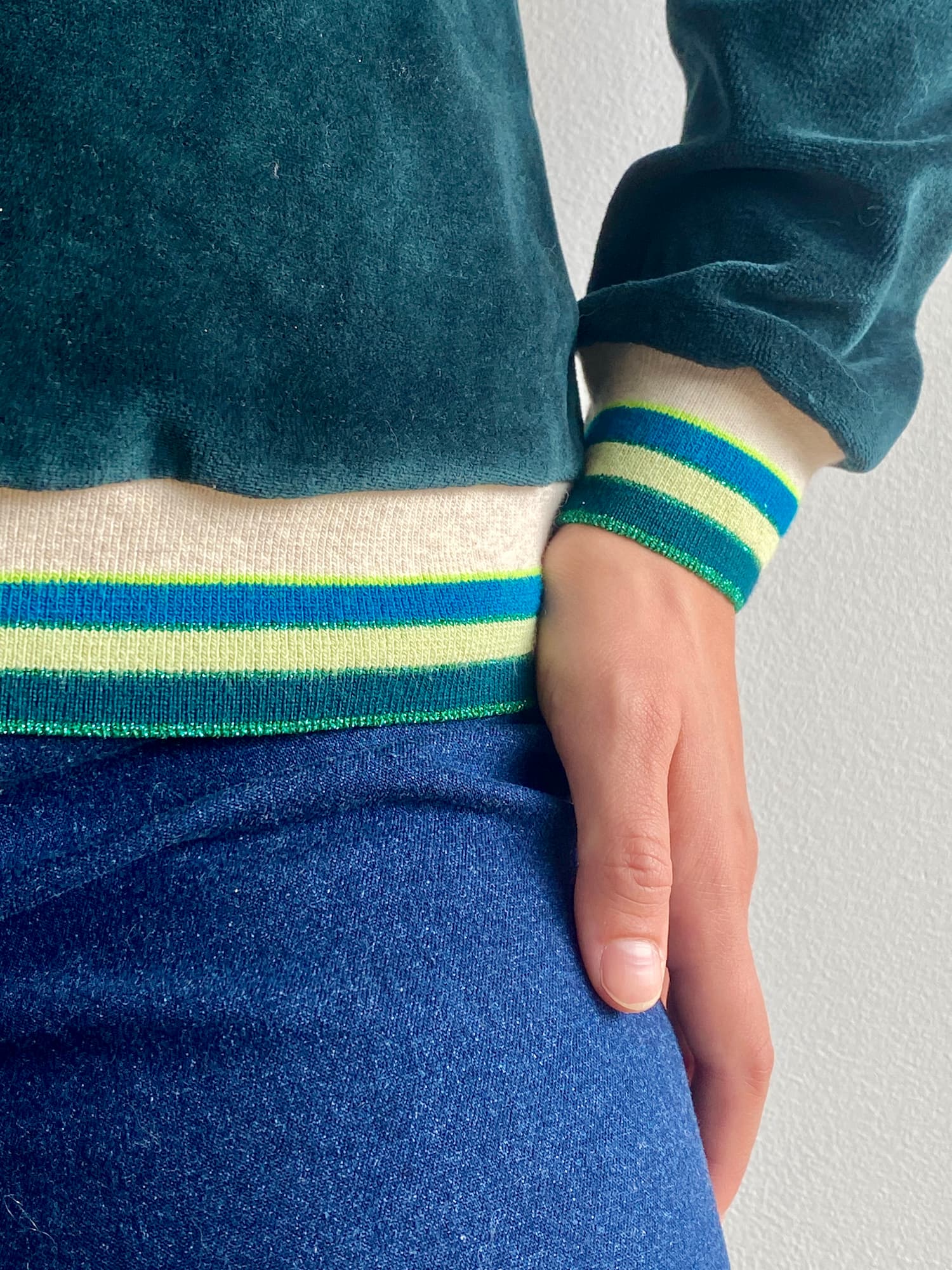 • Mixed with a new off white, duck green, lurex green and fluo green rib