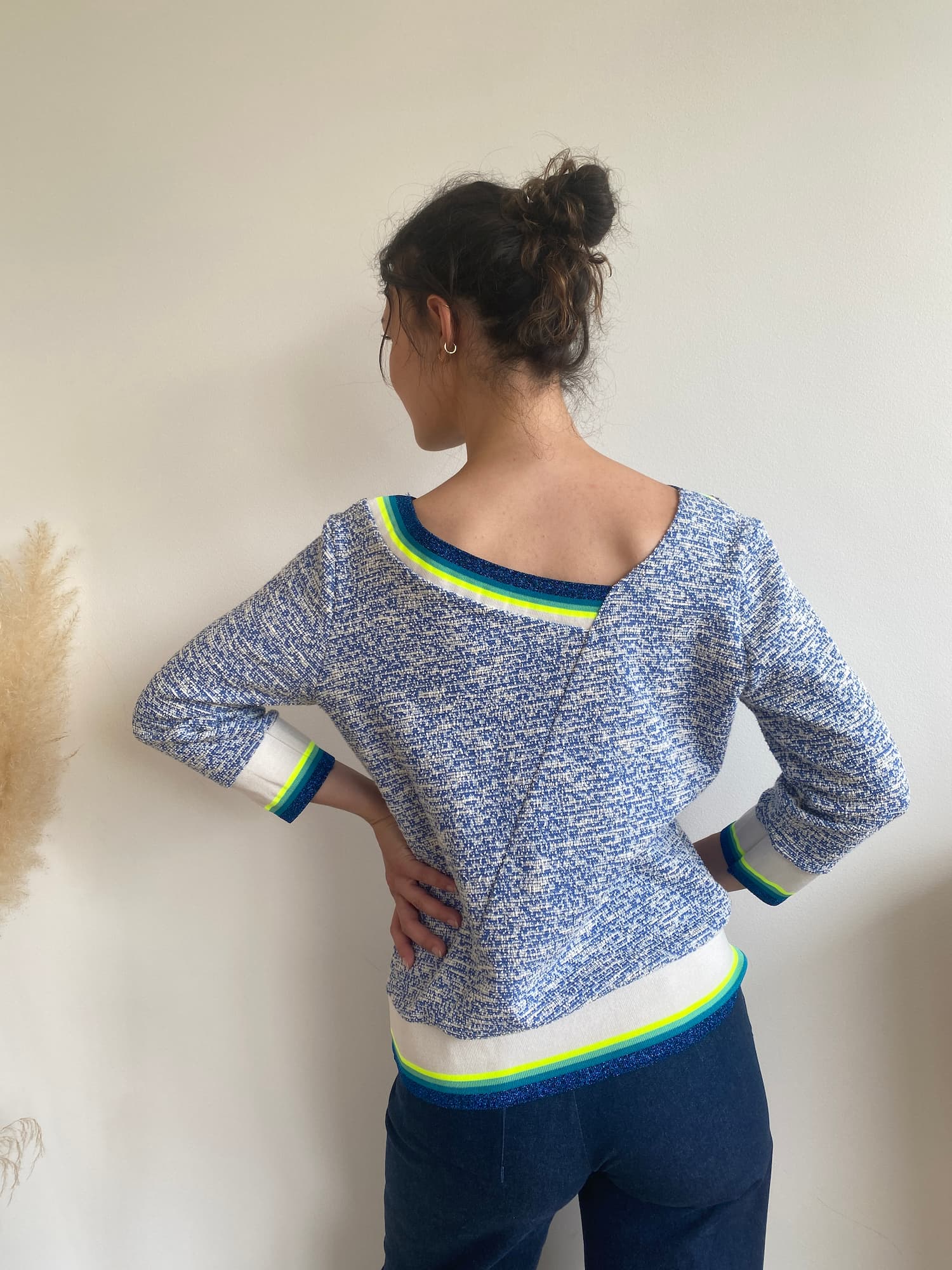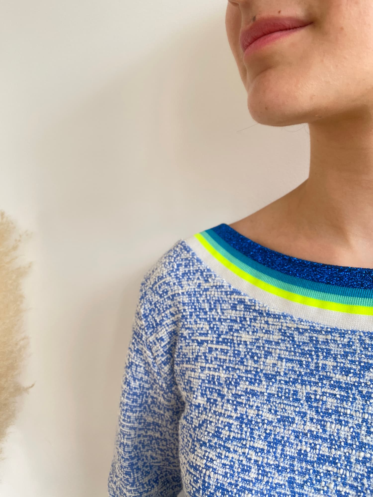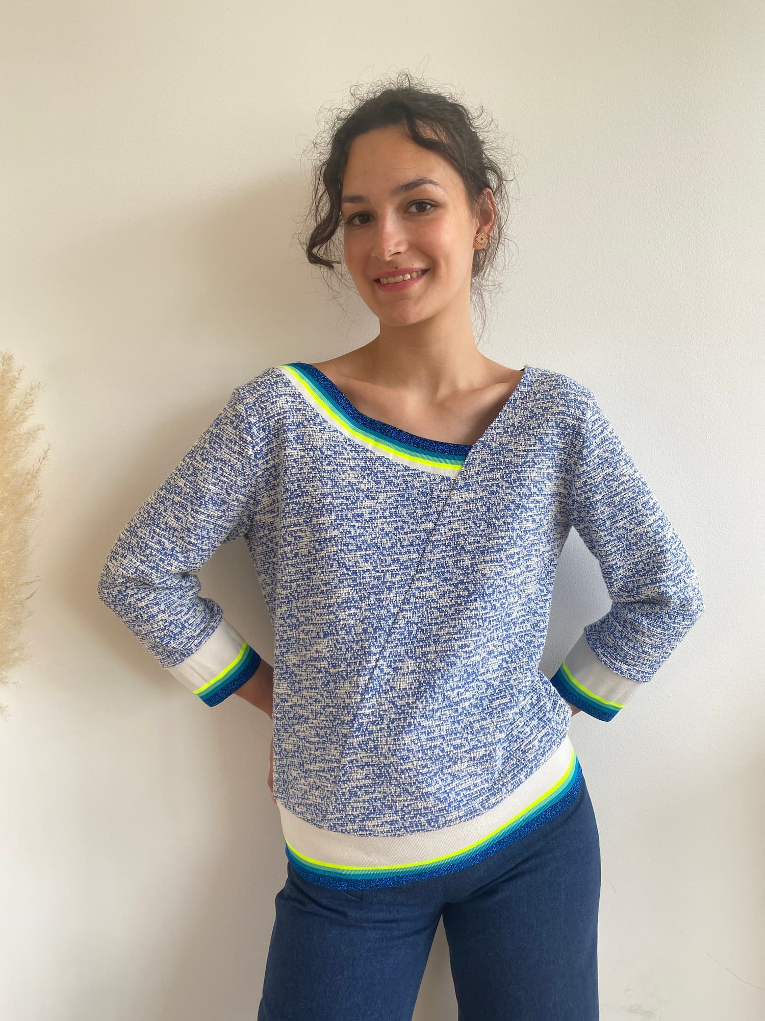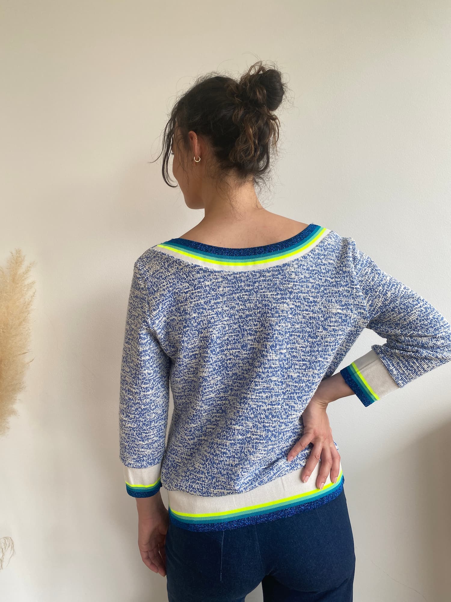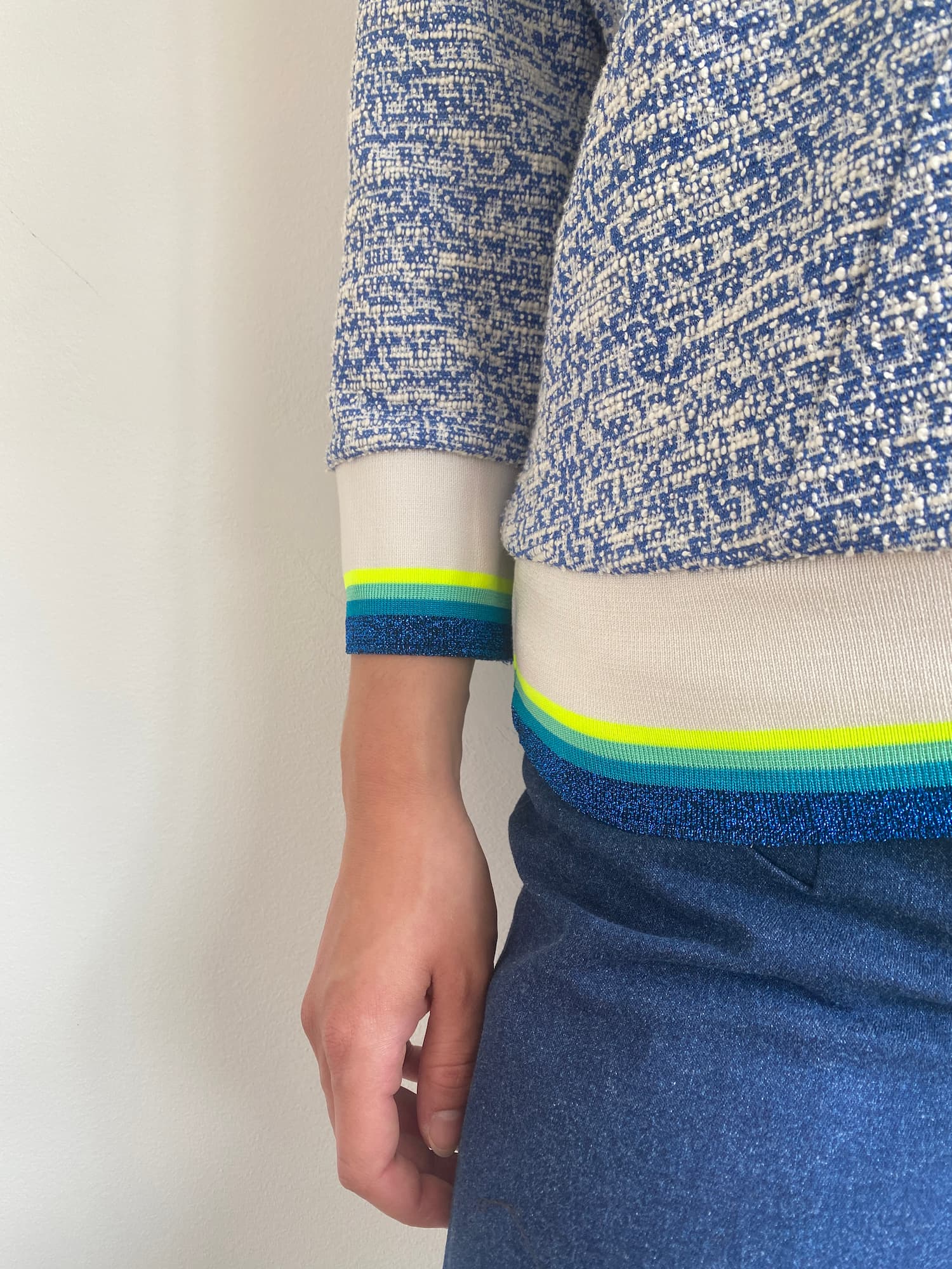 • T-shirt in 100% speckled cotton, off white and electric blue